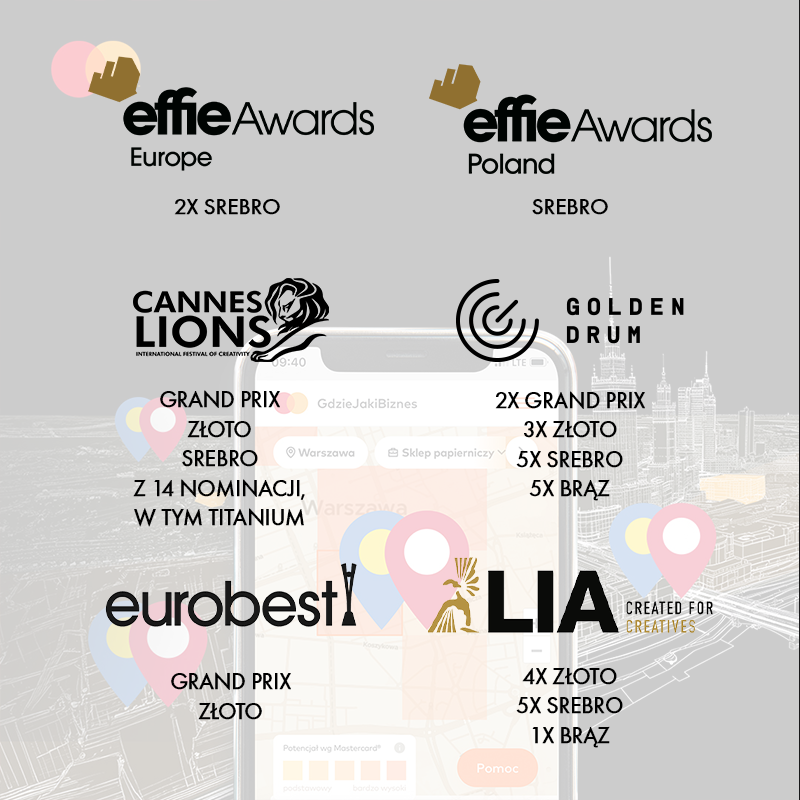 W 2025 roku na gali Effie Europe wygraliśmy 3 statuetki, co było historycznym wynikiem agencji z Polski od 30 lat istnienia gali. Na gali Effie Poland zdobyliśmy złoto, srebro i brąz, co uplasowało nad w ścisłej czołówce festiwalu. Według prestiżowego rankingu WARC, zajęliśmy 8. miejsce wśród 100 najlepszych agencji reklamowych na świecie. W latach 2023–2025 zdobyliśmy łącznie 16 Lwów w Cannes i otrzymaliśmy aż 33 nominacje. To nie tylko najlepszy wynik w historii polskiej reklamy, ale również rekordowy rezultat wśród agencji kreatywnych wywodzących się z regionu CEE oraz jeden z najbardziej imponujących osiągnięć w skali globalnej ostatnich lat.